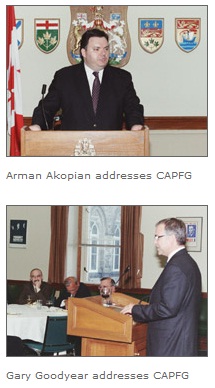 House of Commons and Canadian Senate members were invited by MP Gary Goodyear (Conservative-Cambridge) to attend the founding meeting and elect a new executive for CAPF. 28 members of Parliament and Senators joined CAPF on the date of its establishment.