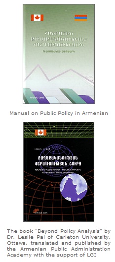 With the support of LGI, the Academy has translated several English-language texts, and recently has published the first-ever Armenian-language Manual on Public Policy, as well as the first Armenian-language Glossary of Public Policy Terms.