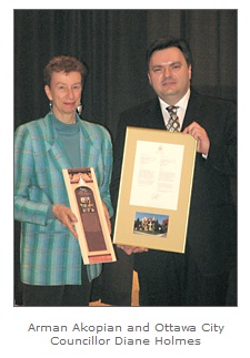 Mr. Arman Akopian, Chargé d’Affaires of the Republic of Armenia in Canada, also received the framed Letter of Appreciation signed by Mayor Larry O’Brien. The letter commends the Armenian Embassy for its active participation in the preservation of the cultural heritage of Ottawa. The interpretive bilingual bronze plaque will be installed on the Embassy later this year in recognition of the unique cultural and architectural value of the historical mansion at 7 Delaware.