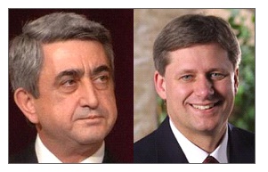 The Right Honourable Stephen Harper, Prime Minister of Canada, sent a message to H.E.Mr. Serzh Sargsyan, congratulating him on his inauguration as President of the Republic of Armenia. In his letter the Prime Minister particularly stresses that “Canada has long supported democratic development as one of its international priorities. We were pleased to note that Armenia's presidential election showed further progress towards internationally accepted electoral standards”. Mr. Harper further notes that “Canada has been enriched by the presence of a large community of Armenian heritage, who I know will also be heartened by Armenia's democratic progress, both in the parliamentary elections of last May and in the recently concluded presidential election.”