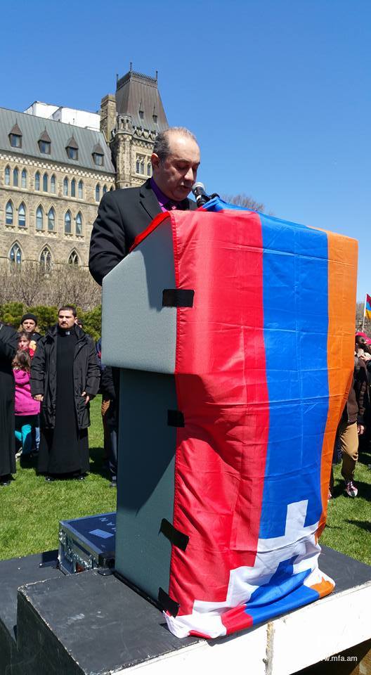 We stand on Parliament Hill today to commemorate the victims of the Armenian Genocide. On the 24th of April, this day 101 years ago, the extensive enactment of one of the gravest crimes of the 20th century began with mass arrests of the Armenian intellectuals in Constantinople, the capital of the Ottoman Empire, and other cities of the empire. It had been preceded by the disarmament and massacre of the Armenian servicemen – citizens of the Ottoman Empire who served in the military at the time. What subsequently happened in 1915 and the years that followed was unprecedented in terms of its volume and its ramifications.
